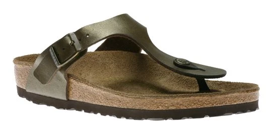 The Gizeh sandal is a unisex sandal.The upper is crafted from skin-friendly, durable synthetic Birko-Flor® treated to create a leather-like surface texture and soft backing. The underside is lined in soft fleece for a breathable abrasion-free wear. This sandal also features an anatomically shaped, cork-latex suede covered footbed conforms to the shape of your foot and features a pronounced arch support and a deep heel cup for optimal comfort and stability. A lightweight EVA sole provides cushioning and shock-absorbing traction.