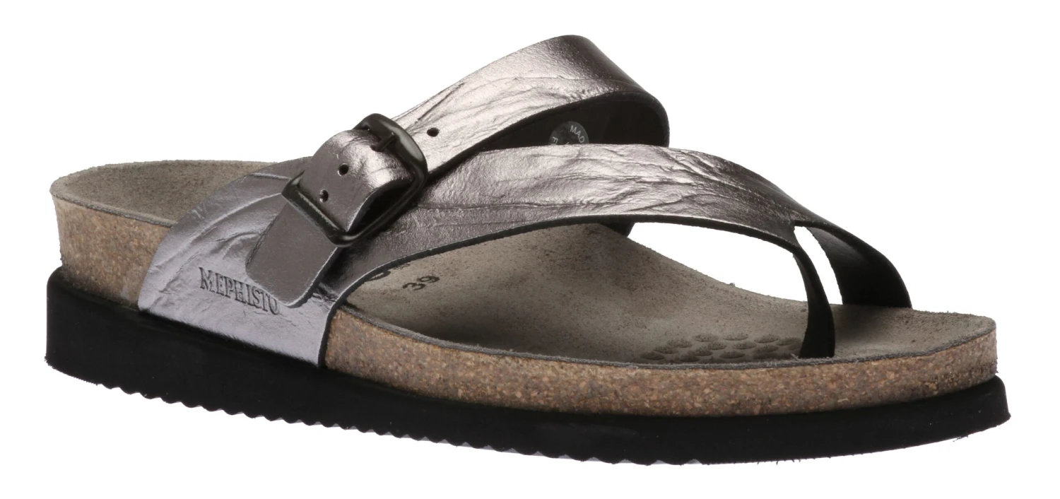 Add a touch of glam to your summer wardrobe with these Helen thong sandals by Mephisto! Ultra-comfortable with its anatomic correct footbed, cork midsole and multi-layered footbed integrated with Soft-Air Technology to reduce shock, it’s hard for any other sandal to compete. The upper is made of a leather upper with a beautiful crinkle effect. An adjustable instep strap ensures a secure fit, a thin toe post helps eliminate irritation and an EVA outsole absorbs shock and reduces stress put on your feet, legs and back. Try these Mephisto sandals and never look back!