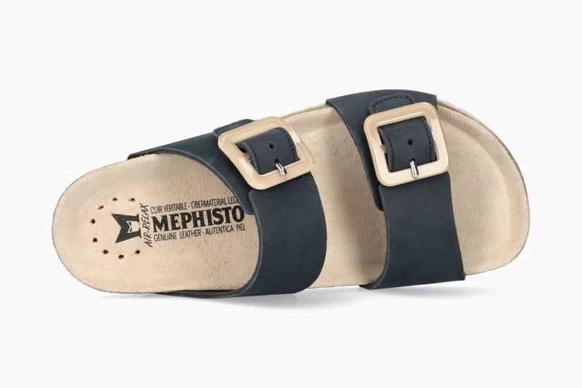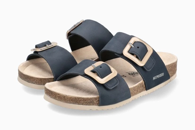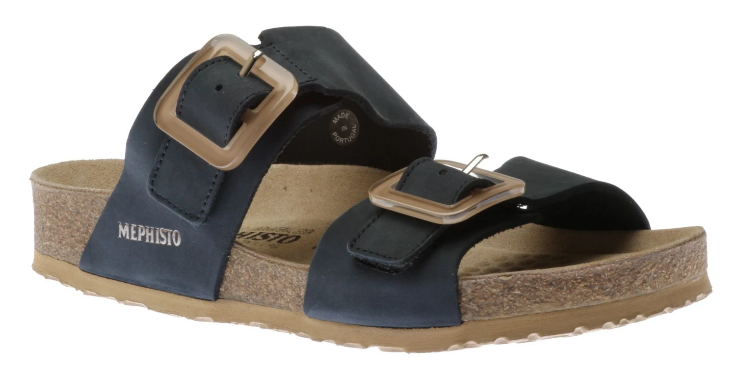 The Madison slide sandal by Mephisto will be your favourite everyday sandal! Ultra-comfortable with its anatomic correct footbed, cork midsole and multi-layered footbed integrated with Soft-Air Technology to reduce shock, it’s hard for any other sandal to compete. Adjustable straps with Velcro closure and decorative beige square buckles ensure a secure fit and an EVA outsole absorbs shock and reduces stress put on your feet, legs and back. Try these Mephisto sandals and never look back!
