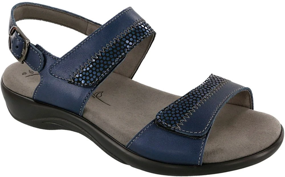 Sleek comfort with adjustability, plus the colour and polka dot print on the straps, makes the Nudu sandal a great, versatile find. Crafted from premium leather, the sandal also features adjustable straps that provide control over your fit, while a cushioned contoured insole gives support all day. Soft cushioned lining surrounds your foot in comfort and a shock-absorbing sole helps support each step.