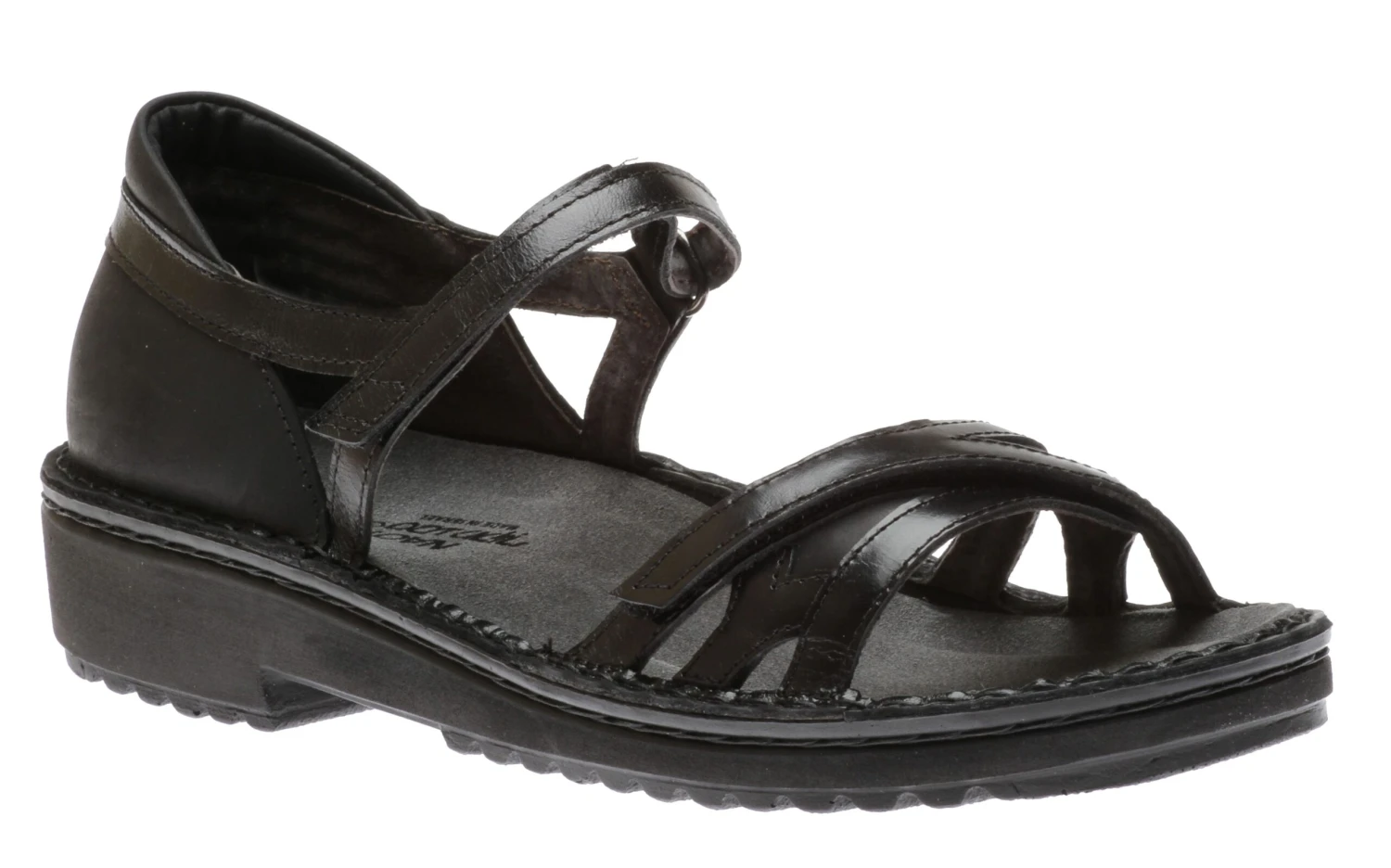 The Tatiana from Naot’s Low Flexi Collection is the perfect walking sandal. Featuring a leather upper, the Tatiana also has an enclosed heel and an adjustable strap with a Velcro closure at the instep and at the front strap for a secure custom fit. Naot’s removable, anatomic cork and latex footbed is wrapped in pampering suede and molds to the shape of the foot with wear. The polyurethane sole is extremely lightweight and durable.
